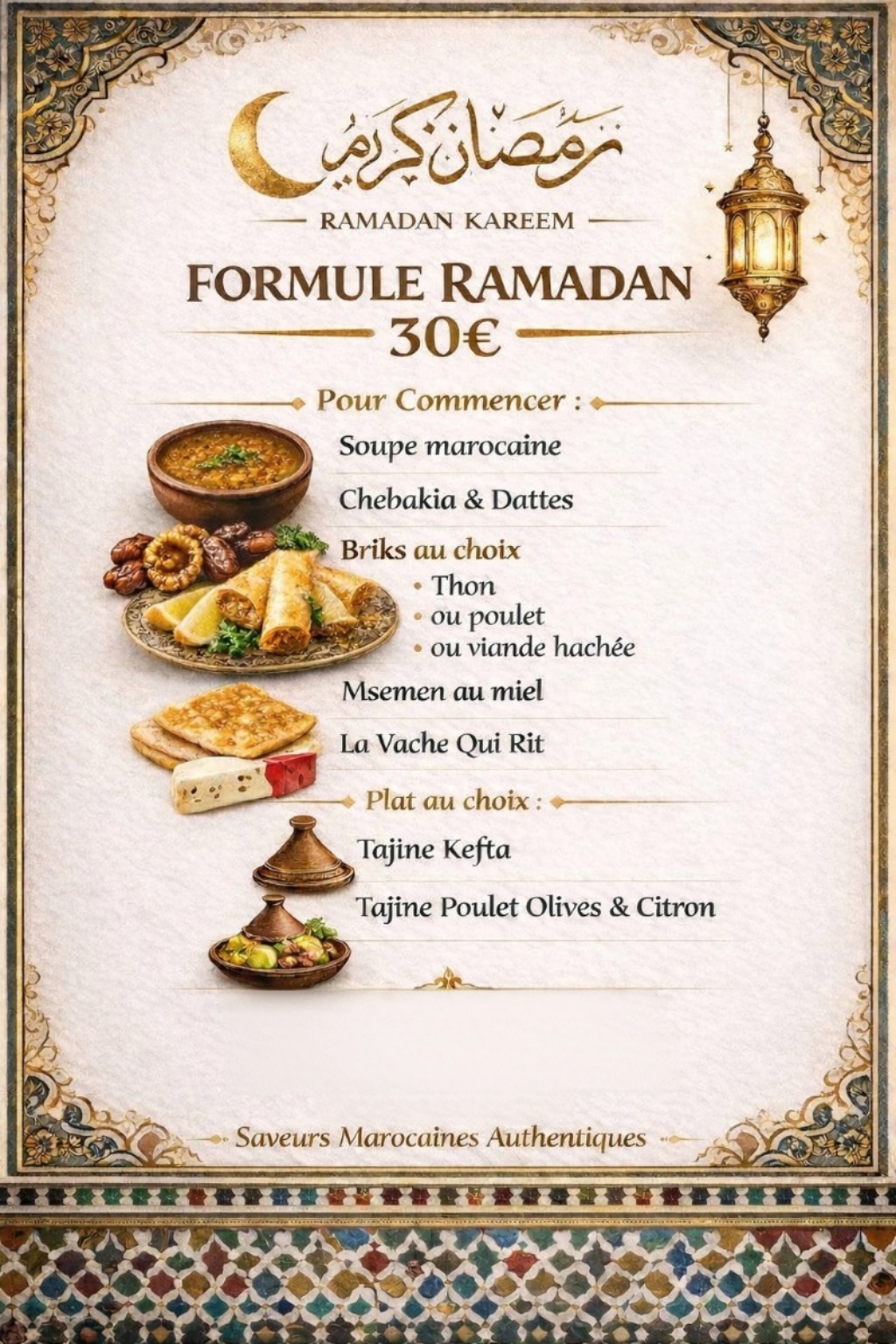 Au Menu : La "Formule Ramadan" à 30€